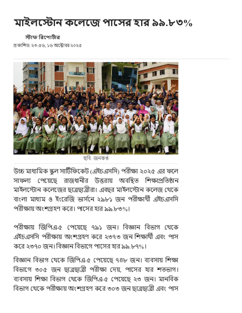 মাইলস্টোন কলেজে পাসের হার ৯৯.৮৩%.pdf Published on 16 October 2025 Newspaper দৈনিক জনকণ্ঠ Category Public Examination Public Examination HSC Download