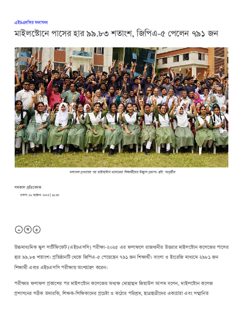 মাইলস্টোনে পাসের হার ৯৯.৮৩ শতাংশ, জিপিএ-৫ পেলেন ৭৯১ জন.pdf Published on 16 October 2025 Newspaper দৈনিক সমকাল Category Public Examination Public Examination HSC Download