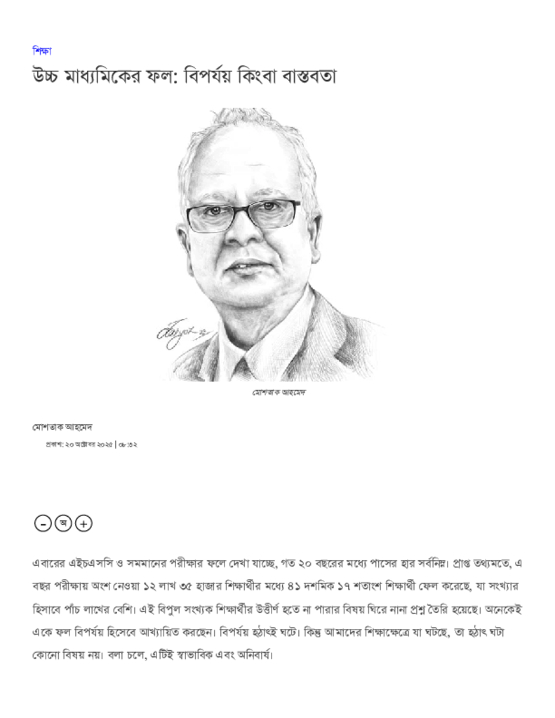 উচ্চ মাধ্যমিকের ফল_ বিপর্যয় কিংবা বাস্তবতা.pdf Published on 20 October 2025 Newspaper দৈনিক সমকাল Category Personal Opinion / Discussion / Commentary Public Examination HSC Download