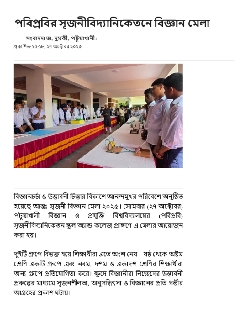 পবিপ্রবির সৃজনীবিদ্যানিকেতনে বিজ্ঞান মেলা.pdf Published on 27 October 2025 Newspaper দৈনিক ইত্তেফাক Category Science Education General Education Download