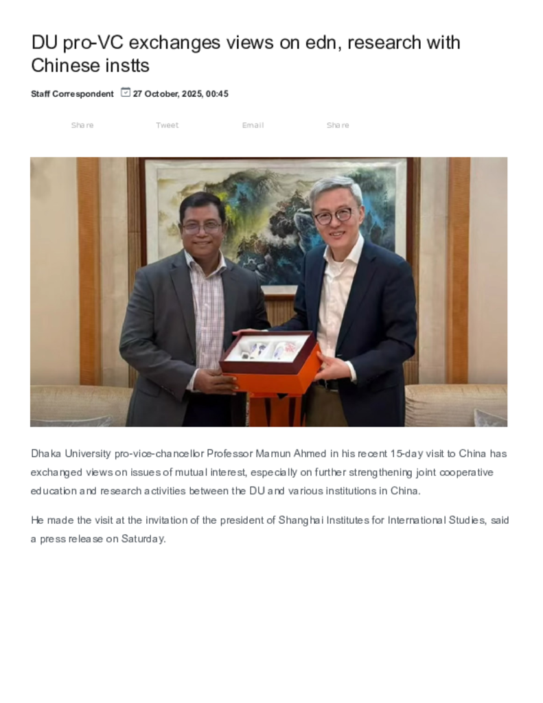 New Age _ DU pro-VC exchanges views on edn, research with Chinese instts.pdf Published on 27 October 2025 Newspaper New Age Category Others General Education Download