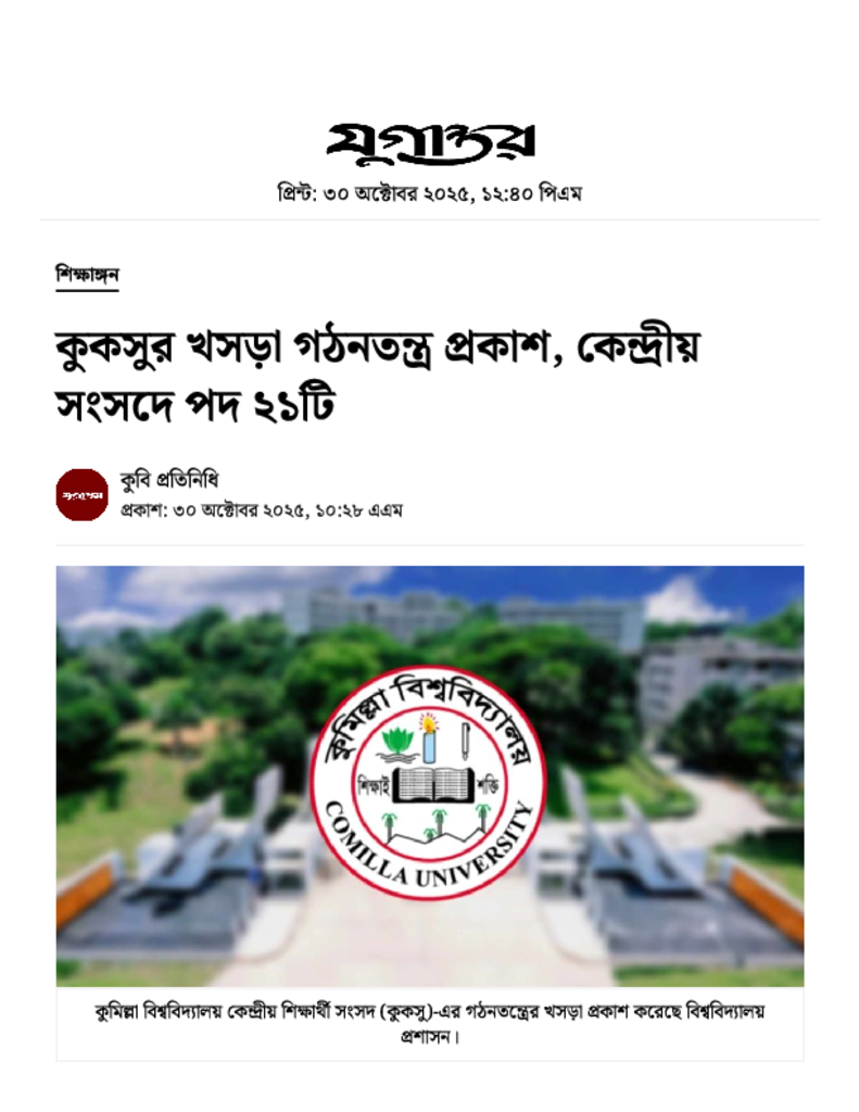 কুকসুর খসড়া গঠনতন্ত্র প্রকাশ, কেন্দ্রীয় সংসদে পদ ২১টি.pdf Published on 30 October 2025 Newspaper দৈনিক যুগান্তর Category Student Politics General Education Download
