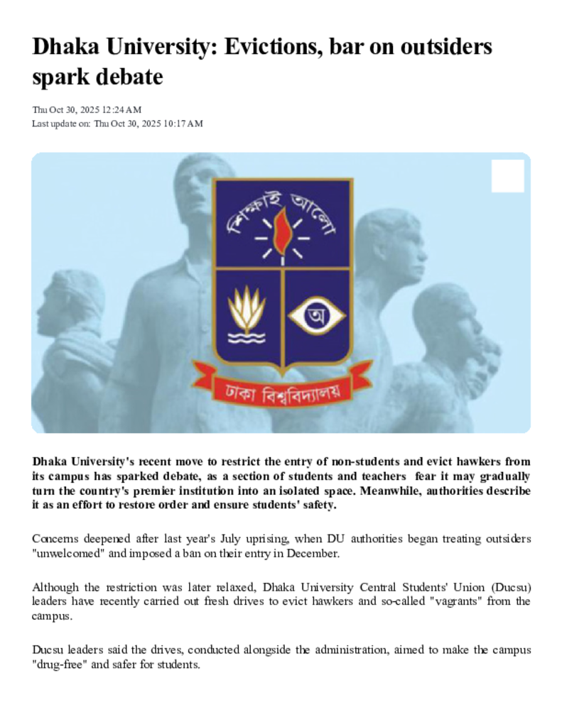 _ Dhaka University_ Evictions, bar on outsiders spark debate.pdf Published on 30 October 2025 Newspaper The Daily Star Category Others General Education Download