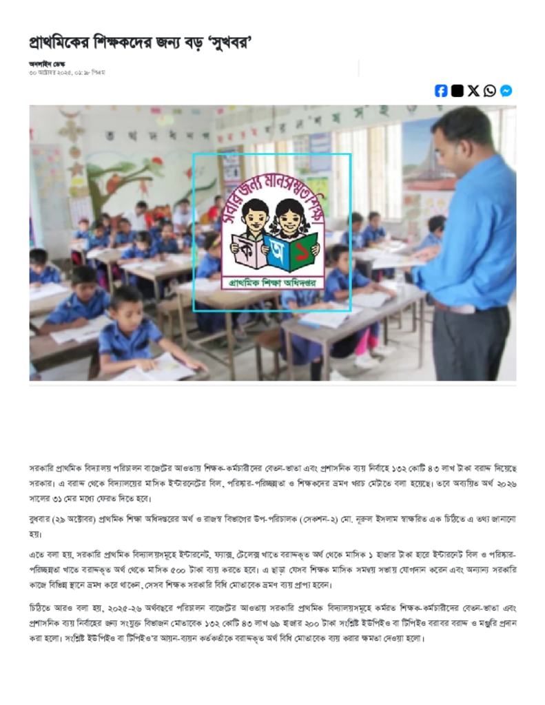 প্রাথমিকের শিক্ষকদের জন্য বড় ‘সুখবর’.pdf Published on 30 October 2025 Newspaper দৈনিক আমাদের সময় Category Educational Ministry / Departments Education Ministry / Division / Directorate Download