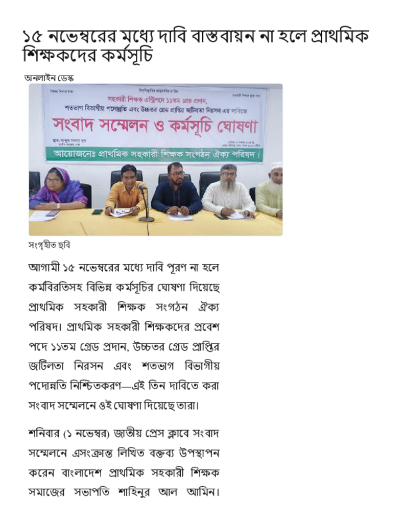 ১৫ নভেম্বরের মধ্যে দাবি বাস্তবায়ন না হলে প্রাথমিক শিক্ষকদের কর্মসূচি.pdf Published on 01 November 2025 Newspaper দৈনিক কালের কন্ঠ Category Educational Ministry / Departments Education Ministry / Division / Directorate General Education Download