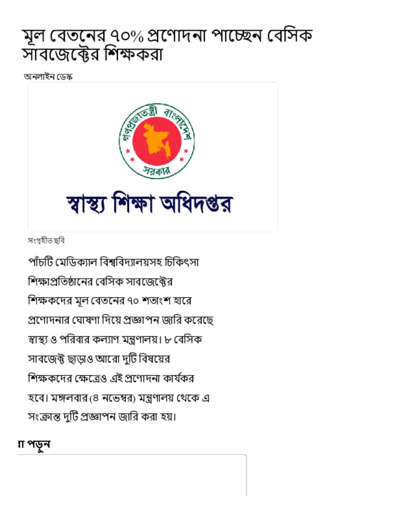 মূল বেতনের ৭০% প্রণোদনা পাচ্ছেন বেসিক সাবজেক্টের শিক্ষকরা.pdf Published on 04 November 2025 Newspaper দৈনিক কালের কন্ঠ Category Professional Education Professional Education Medical Download