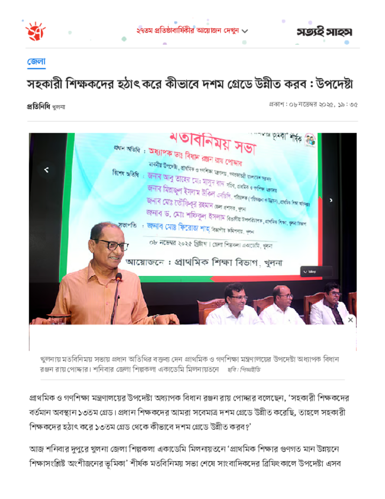 সহকারী শিক্ষকদের হঠাৎ করে কীভাবে দশম গ্রেডে উন্নীত করব_ উপদেষ্টা.pdf Published on 08 November 2025 Newspaper দৈনিক প্রথম আলো Category Educational Ministry / Departments Education Ministry / Division / Directorate Download