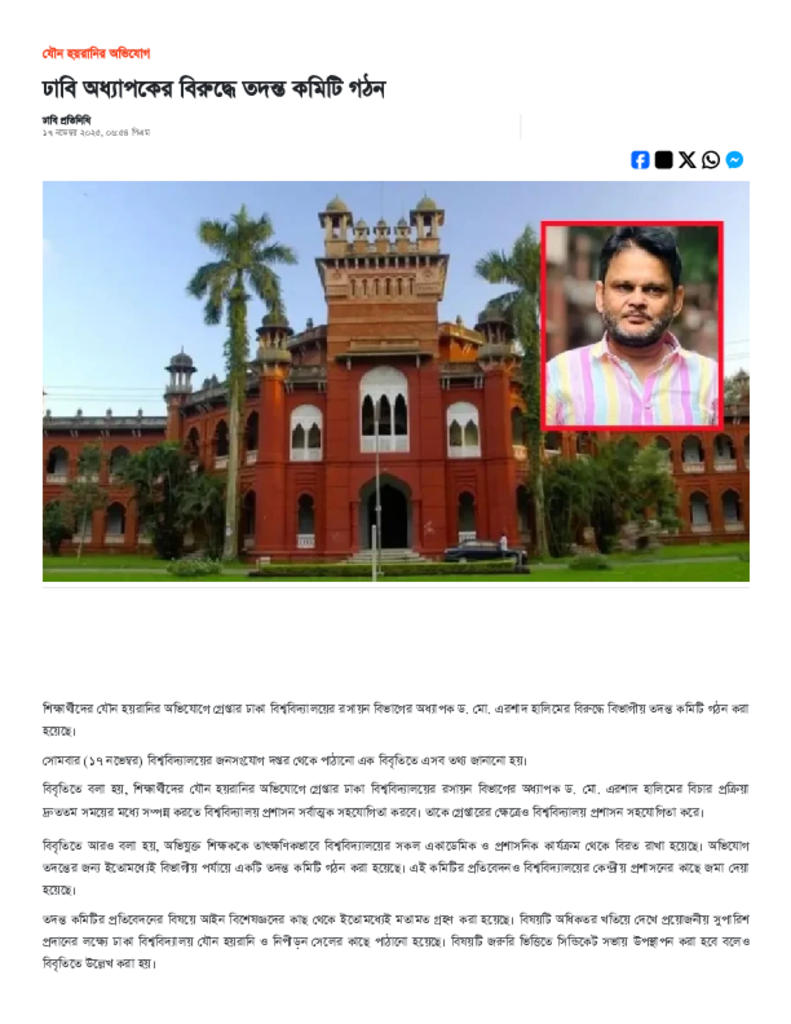 ছাত্রদের যৌন হয়রানির অভিযোগে ঢাবি অধ্যাপক আটক.pdf Published on 17 November 2025 Newspaper দৈনিক আমাদের সময় Category Others General Education Download