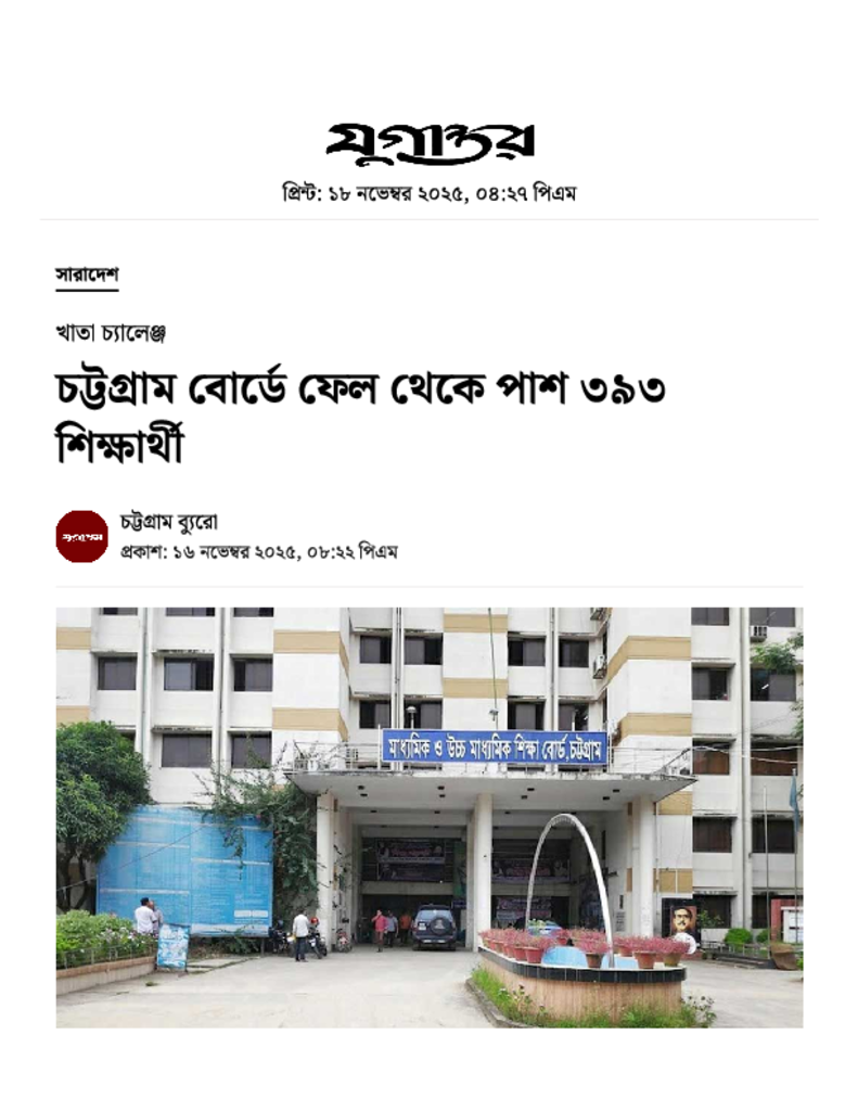 চট্টগ্রাম বোর্ডে ফেল থেকে পাশ ৩৯৩ শিক্ষার্থী.pdf Published on 16 November 2025 Newspaper দৈনিক যুগান্তর Category Public Examination Public Examination HSC Download
