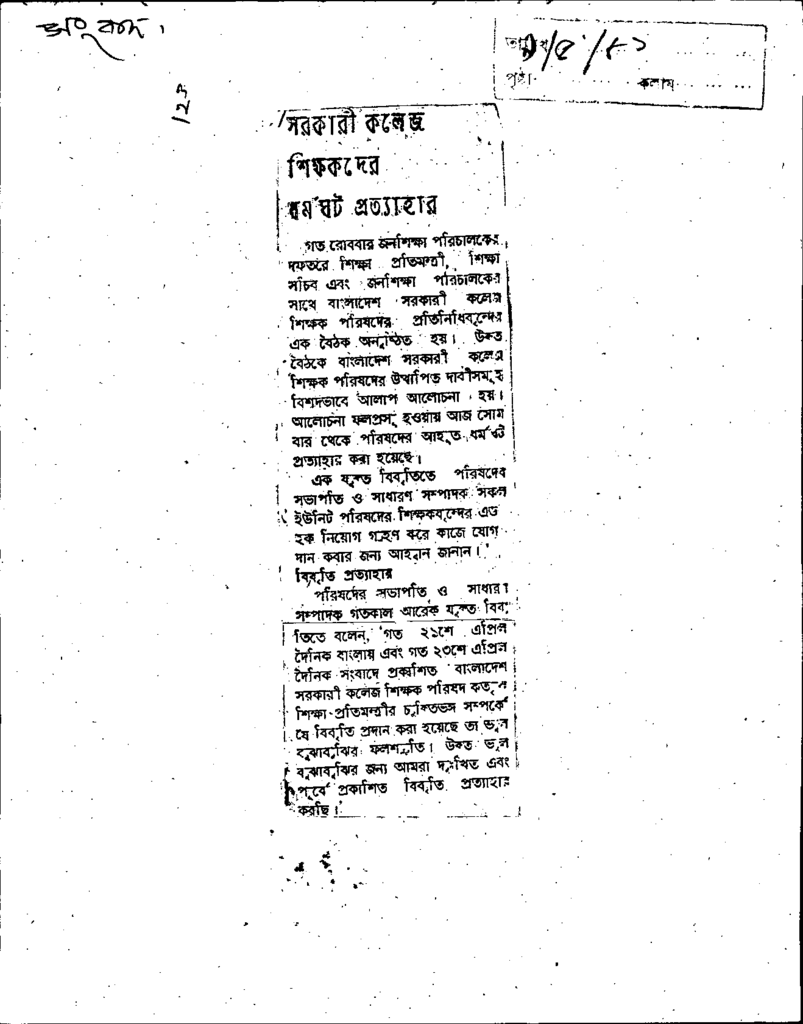 সরকারী কলেজ শিক্ষকদের ধর্মঘট প্রত্যাহার Published on Newspaper দৈনিক সংবাদ Category General Education Download