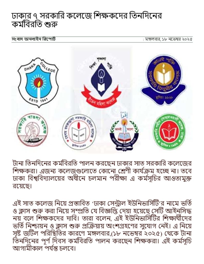 ঢাকার ৭ সরকারি কলেজে শিক্ষকদের তিনদিনের কর্মবিরতি শুরু _ সংবাদ অনলাইন.pdf