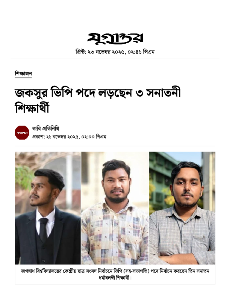 জকসুর ভিপি পদে লড়ছেন ৩ সনাতনী শিক্ষার্থী.pdf Published on 21 November 2025 Newspaper দৈনিক যুগান্তর Category Student Politics General Education Download