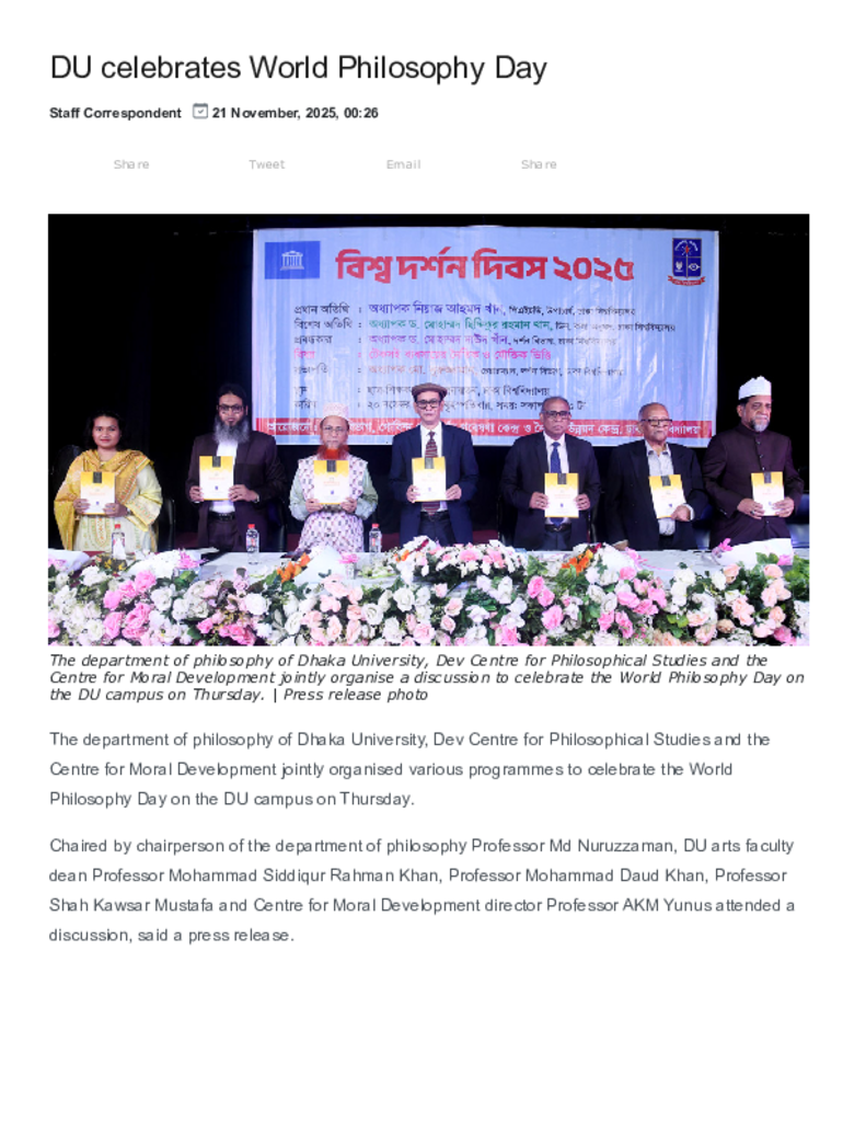 New Age _ DU celebrates World Philosophy Day.pdf Published on 21 November 2025 Newspaper New Age Category Others General Education Download