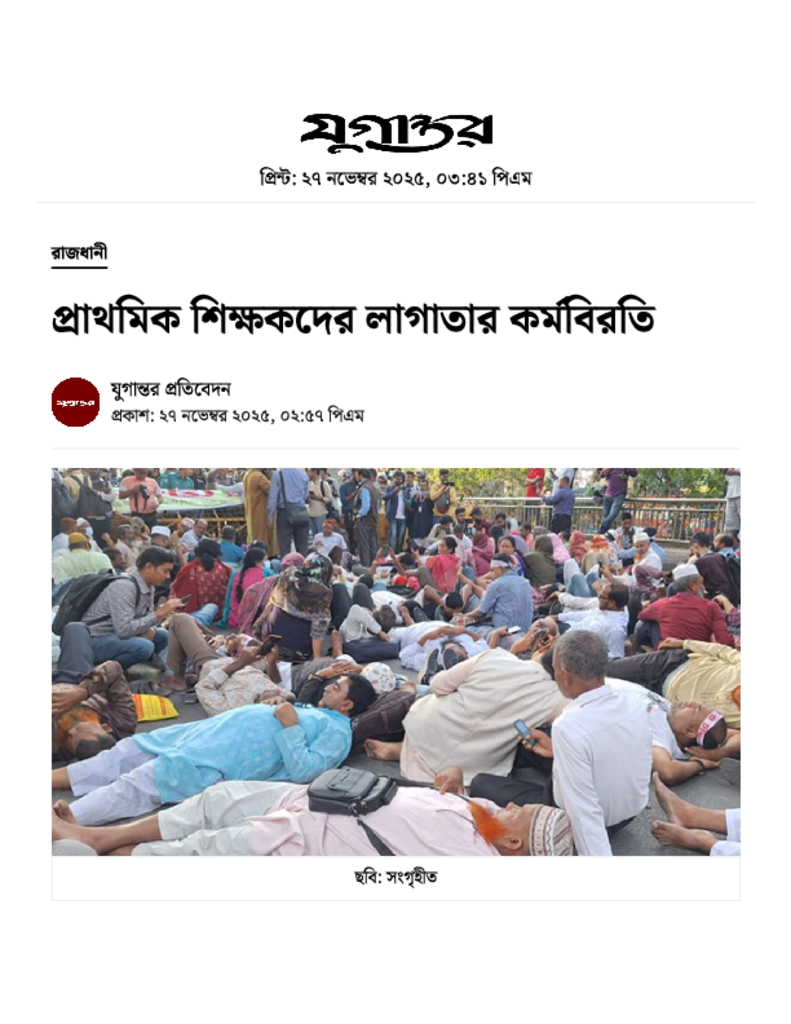 প্রাথমিক শিক্ষকদের লাগাতার কর্মবিরতি.pdf Published on 27 November 2025 Newspaper দৈনিক যুগান্তর Category Others General Education Download