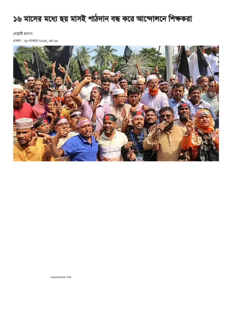 ১৬ মাসের মধ্যে ছয় মাসই পাঠদান বন্ধ করে আন্দোলনে শিক্ষকরা.pdf Published on 29 November 2025 Newspaper দৈনিক ইত্তেফাক Category Personal Opinion / Discussion / Commentary General Education Download