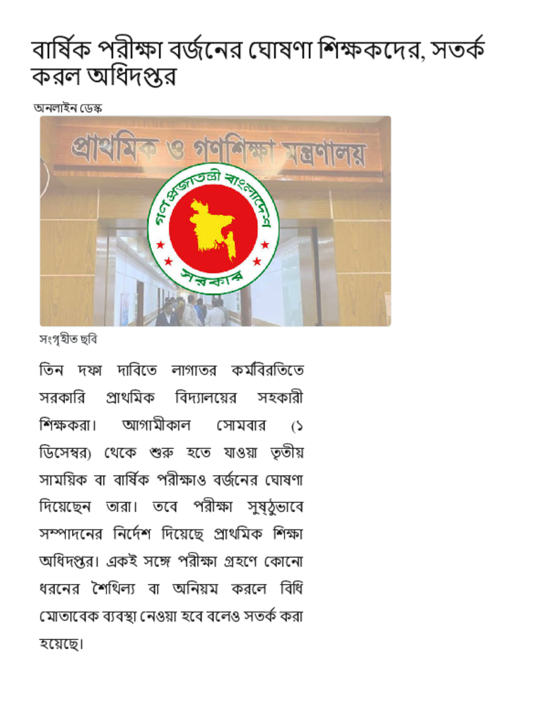 বার্ষিক পরীক্ষা বর্জনের ঘোষণা শিক্ষকদের, সতর্ক করল অধিদপ্তর.pdf