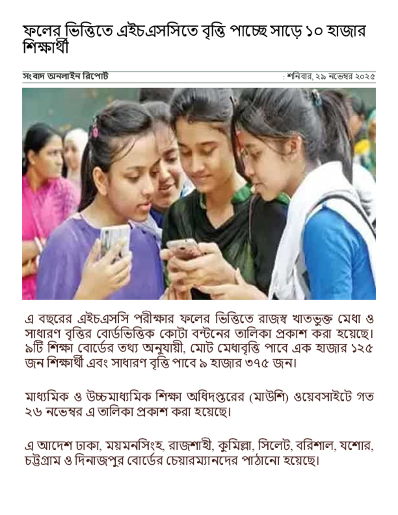 ফলের ভিত্তিতে এইচএসসিতে বৃত্তি পাচ্ছে সাড়ে ১০ হাজার শিক্ষার্থী _ সংবাদ অনলাইন.pdf Published on 29 November 2025 Newspaper দৈনিক সংবাদ Category Educational Ministry / Departments General Education Download