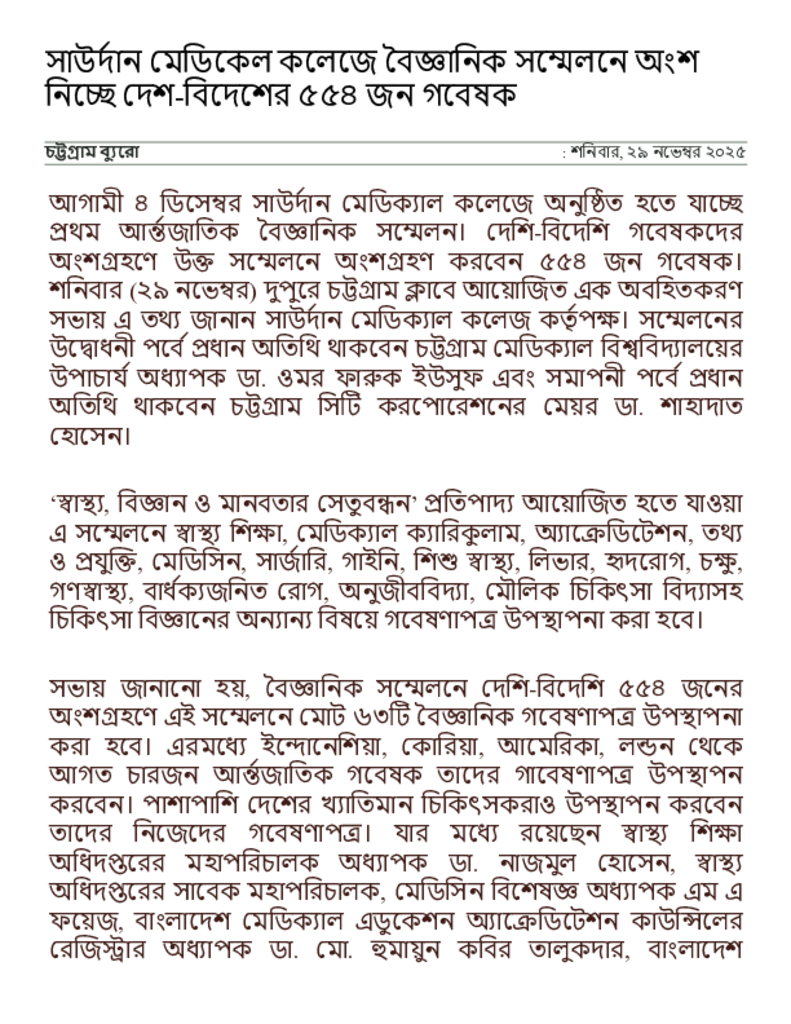 সাউর্দান মেডিকেল কলেজে বৈজ্ঞানিক সম্মেলনে অংশ নিচ্ছে দেশ-বিদেশের ৫৫৪ জন গবেষক.pdf