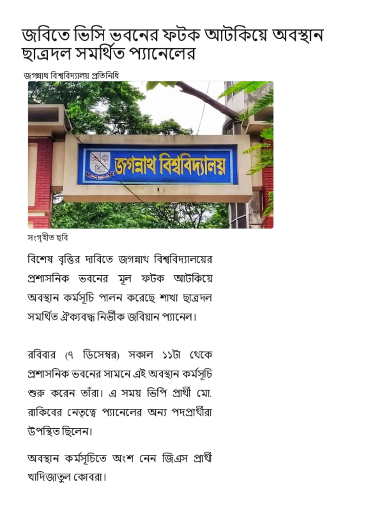 জবিতে ভিসি ভবনের ফটক আটকিয়ে অবস্থান ছাত্রদল সমর্থিত প্যানেলের.pdf Published on 07 December 2025 Newspaper দৈনিক কালের কন্ঠ Category Student Politics General Education Download