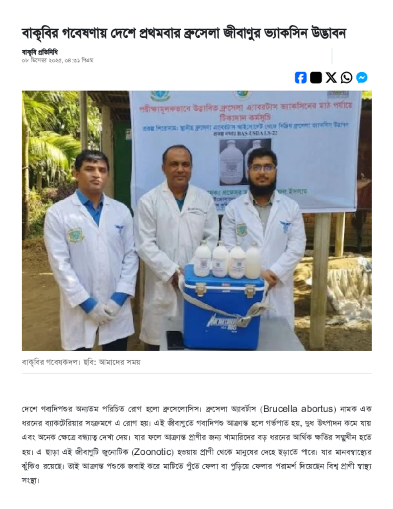 বাকৃবির গবেষণায় দেশে প্রথমবার ব্রুসেলা জীবাণুর ভ্যাকসিন উদ্ভাবন.pdf Published on 08 December 2025 Newspaper দৈনিক আমাদের সময় Category Professional Education General Education Download