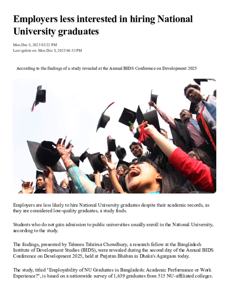 Employers less interested in hiring National University graduates.pdf Published on 09 December 2025 Newspaper The Daily Star Category Personal Opinion / Discussion / Commentary Download