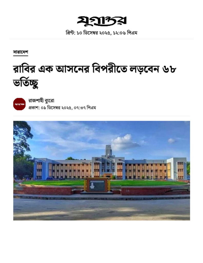 রাবির এক আসনের বিপরীতে লড়বেন ৬৮ ভর্তিচ্ছু.pdf Published on 09 December 2025 Newspaper দৈনিক যুগান্তর Category Admission / Seat Problem General Education Download