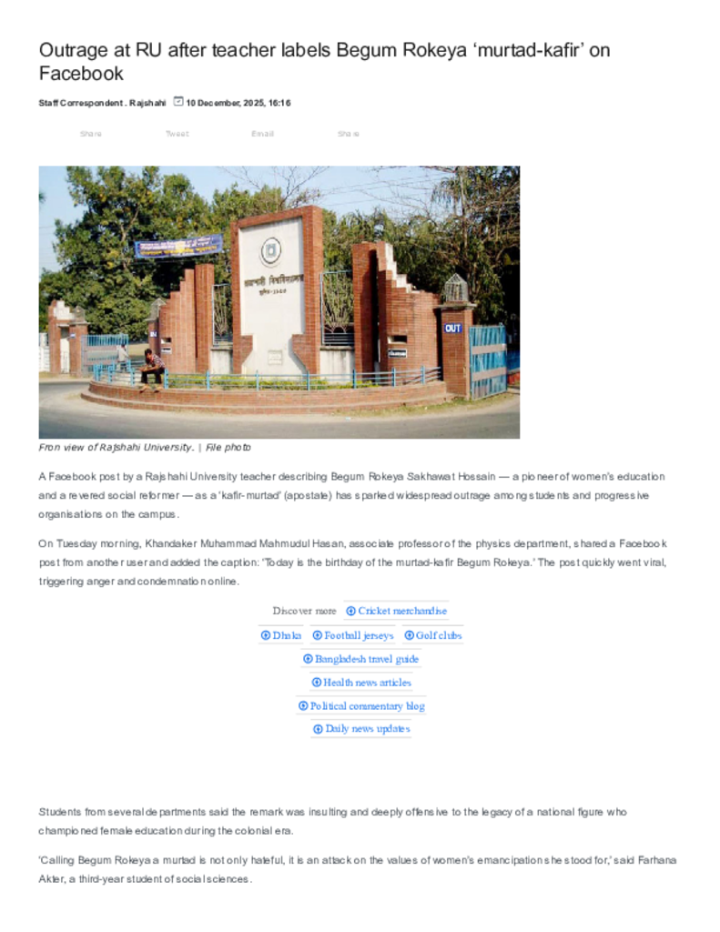 New Age _ Outrage at RU after teacher labels Begum Rokeya ‘murtad-kafir’ on Facebook.pdf Published on 10 December 2025 Newspaper New Age Category Others General Education Download