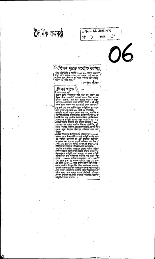 শিক্ষা খাতে সর্বোচ্চ বরাদ্দ Published on Newspaper দৈনিক জনকণ্ঠ Category Education Policy / Education Commission Download