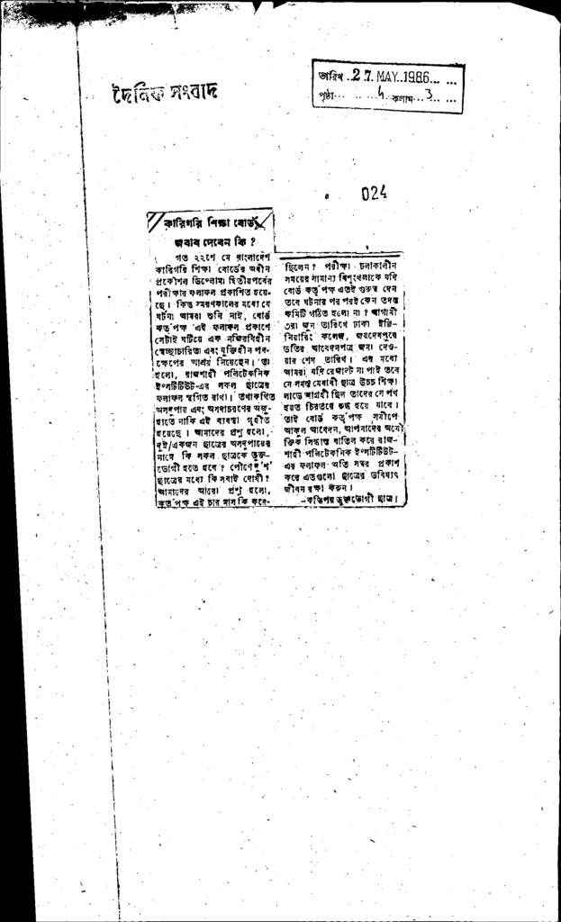 কারিগরি শিক্ষাবোর্ড জবাব দেবেন কি? Published on Newspaper দৈনিক সংবাদ Category Personal Opinion / Discussion / Commentary Personal Speech / Discussion / Comentary Secondary and Higher Secondary Education Download
