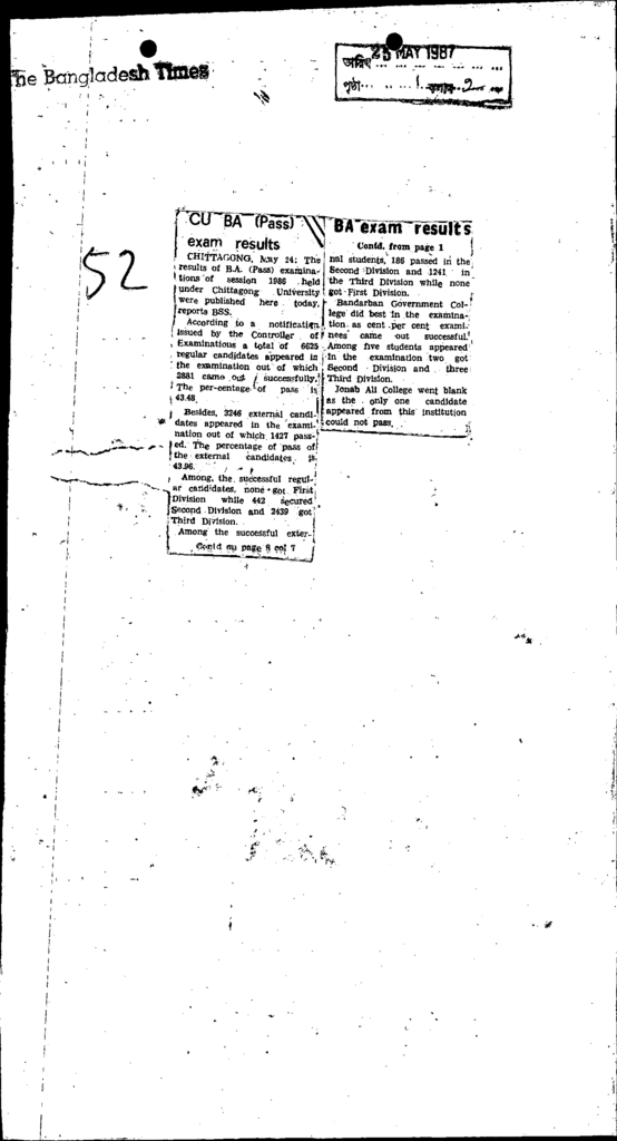 Cu ba(pass)exam result Published on Newspaper The Bangladesh Times Category Personal Opinion / Discussion / Commentary Personal Speech / Discussion / Comentary Secondary and Higher Secondary Education Download