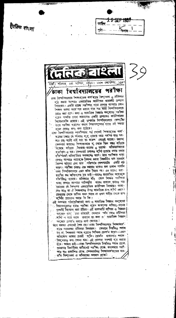 ঢাকা বিশ্ববিদ্যালয়ের পরীক্ষা Published on Newspaper দৈনিক বাংলা Category Personal Opinion / Discussion / Commentary Personal Speech / Discussion / Comentary Secondary and Higher Secondary Education Download