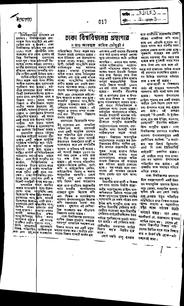 ঢাকা বিশ্ববিদ্যালয গ্রন্থাগার Published on Newspaper দৈনিক ইত্তেফাক Category Admission / Seat Problem Download