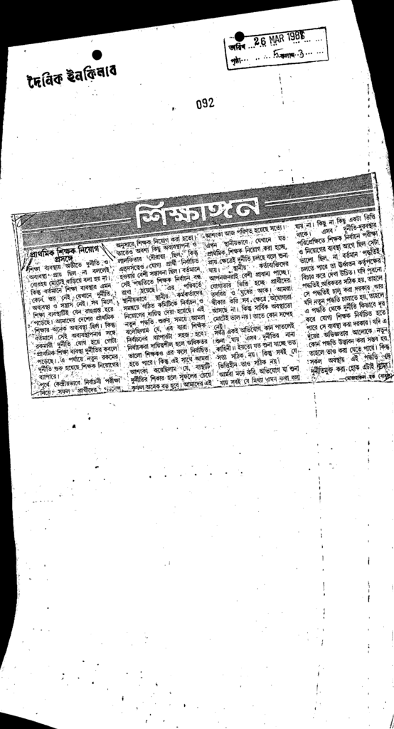 প্রাথমিকশিক্ষকনিয়োগপ্রসঙ্গে