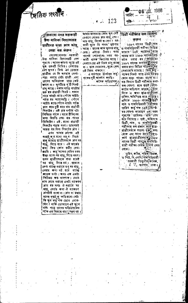 শেরেবাংলানগরসরকারীবালিকাবিদ্যালয়েরছাত্রীদেরদ্বারাক্লাসঝাড়ুদেয়াবন্ধকরুন
