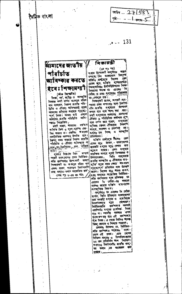 আমাদের জাতীয় পরিচিতি আবিস্কার করতে হবে :শিক্ষামন্ত্রী Published on Newspaper দৈনিক বাংলা Category Admission / Seat Problem Download