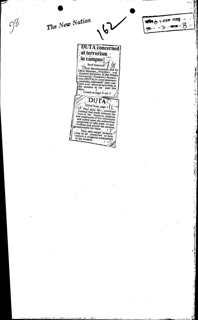 Duta concerned at terrorsm in campus Published on Newspaper The New Nation Category Campus Terrorism Download