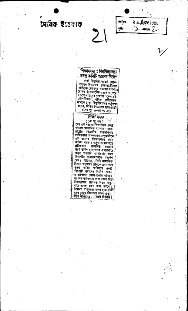শিক্ষাসফরঃ বিশ্ববিদ্যালয়ে তদন্ত কমিটি গঠনের নির্দেশ Published on Newspaper দৈনিক ইত্তেফাক Category Education Policy / Education Commission Download