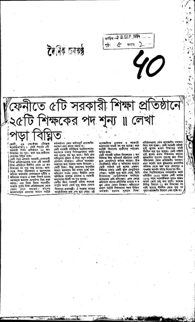 ফেনীতে ৫টি সরকারী শিক্ষক প্রতিষ্ঠানে ২৫টি শিক্ষকের পদ পূন্য ।। লেখা পড়া বিঘ্নিত Published on Newspaper দৈনিক জনকণ্ঠ Category General Education Download