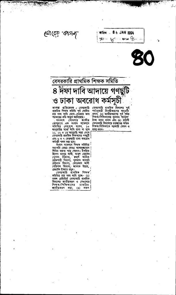 ৪ দফা দাবি আদাযে গণছুটি ও ঢাকা অবরোধ কর্মসূচী Published on Newspaper দৈনিক ভোরের কাগজ Category General Education General Education Download
