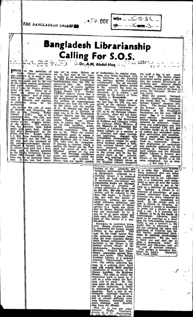 Bangladesh Libraianship calling for s.os. Published on Newspaper The Bangladesh Observer Category Admission / Seat Problem Download