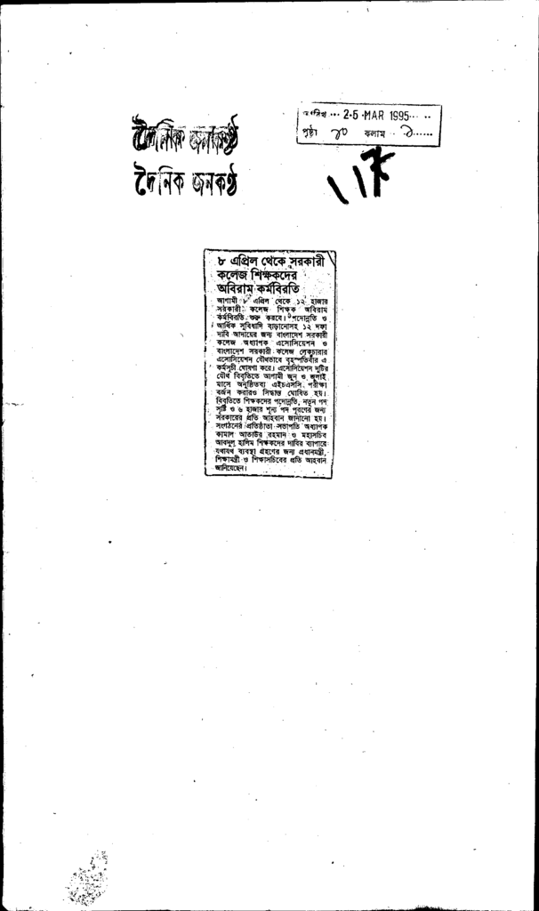 ৮ এপ্রিল থেকে সরকারী কলেজ শিক্ষকদের অবিরাম কর্মবিরতি