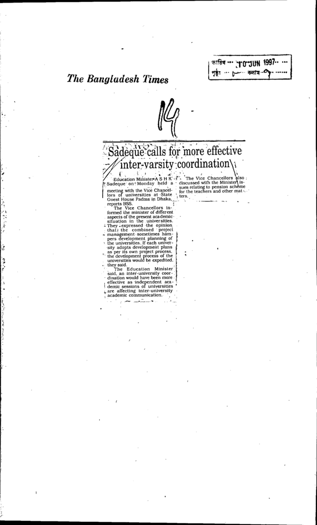 Sadeque calls for more effctive inter- varsity coordination Published on Newspaper The Bangladesh Times Category Personal Opinion / Discussion / Commentary Download