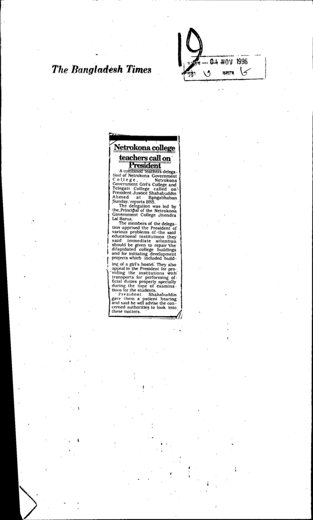 Netrokona college teachers call on president Published on Newspaper The Bangladesh Times Category Education Policy / Education Commission Download