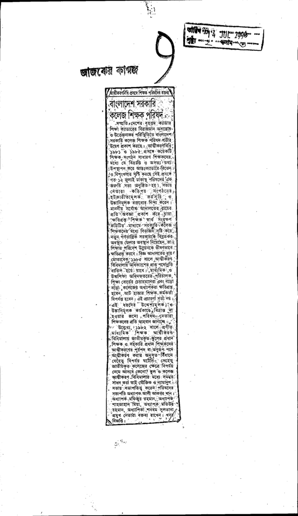 বাংলাদেশ সরকারি কলেজ শিক্ষক পরিষদ Published on Newspaper দৈনিক আজকের কাগজ Category Education Policy / Education Commission Download