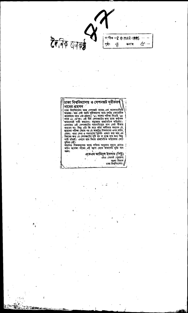 ঢাকা বিশ্ববিদ্যালয় ও সেশনজট দূরীকরণ নামের প্রহসন Published on Newspaper দৈনিক জনকণ্ঠ Category Personal Opinion / Discussion / Commentary Personal Speech / Discussion / Comentary Secondary and Higher Secondary Education Download