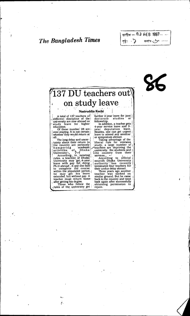 137 du teachers out on study leave Published on Newspaper The Bangladesh Times Category Education Policy / Education Commission Download