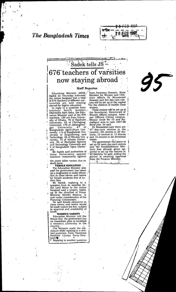 676 teachers of varsities now staying abroad Published on Newspaper The Bangladesh Times Category Education Policy / Education Commission Download
