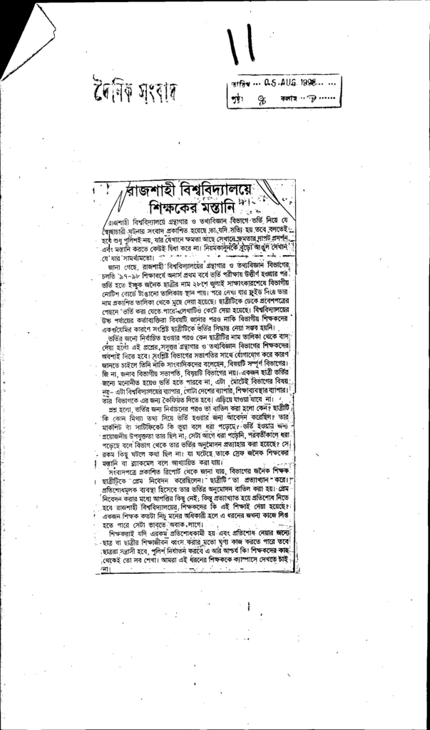 রাজশাহী বিশ্ববিদ্যালয়ে শিক্ষকের মস্তানি