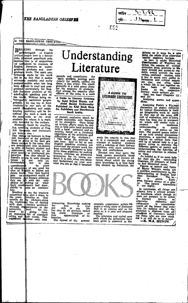 Understanding Literature Published on Newspaper The Bangladesh Observer Category Admission / Seat Problem Download