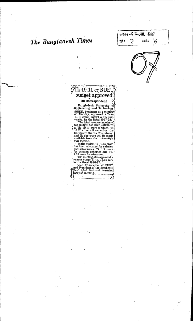 Tk 19.11cr buet budget approved Published on Newspaper The Bangladesh Times Category Professional Education Professional Education Engineering Download